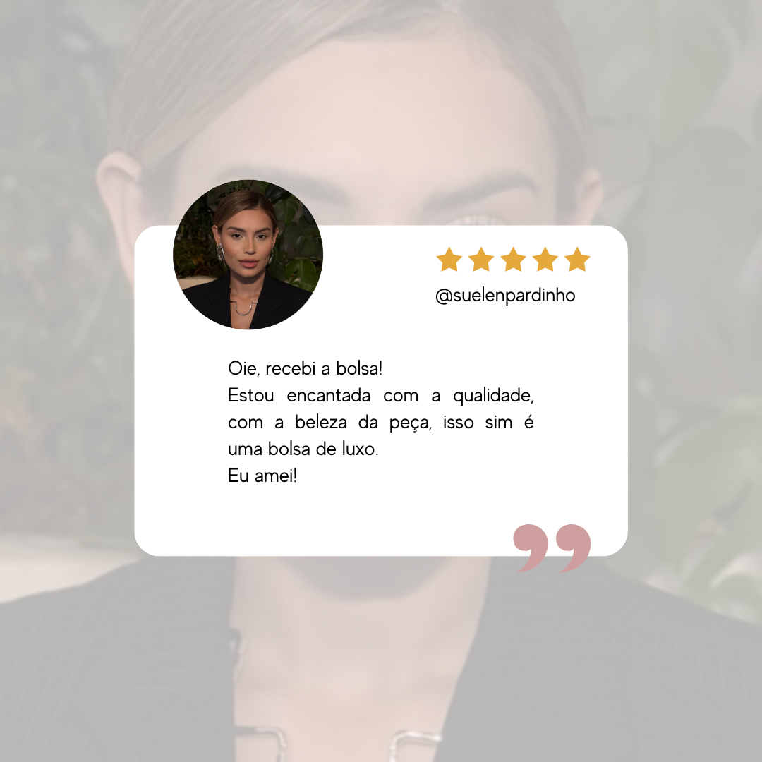 Sua bolsa é entregue em uma caixa rígida exclusiva, que protege e valoriza a peça.