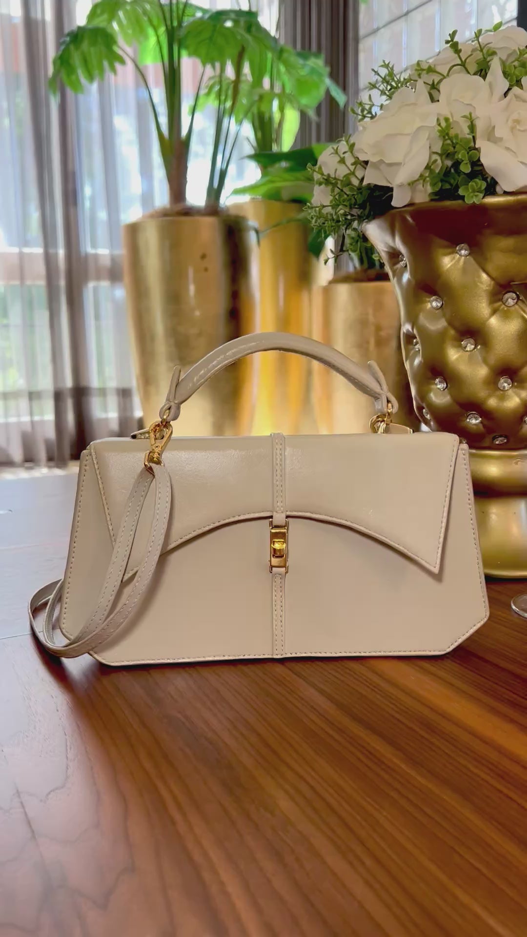 • Ferragens de Prestígio: Fecho central e metais banhados/folheados a ouro, garantindo um brilho solar que resiste ao tempo.